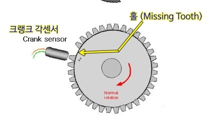 (Missing Tooth)가 있어서 센서에 달린 자석이 기어가 뺴진 홀(Missing Tooth)을 지나갈때 자석에 걸리는