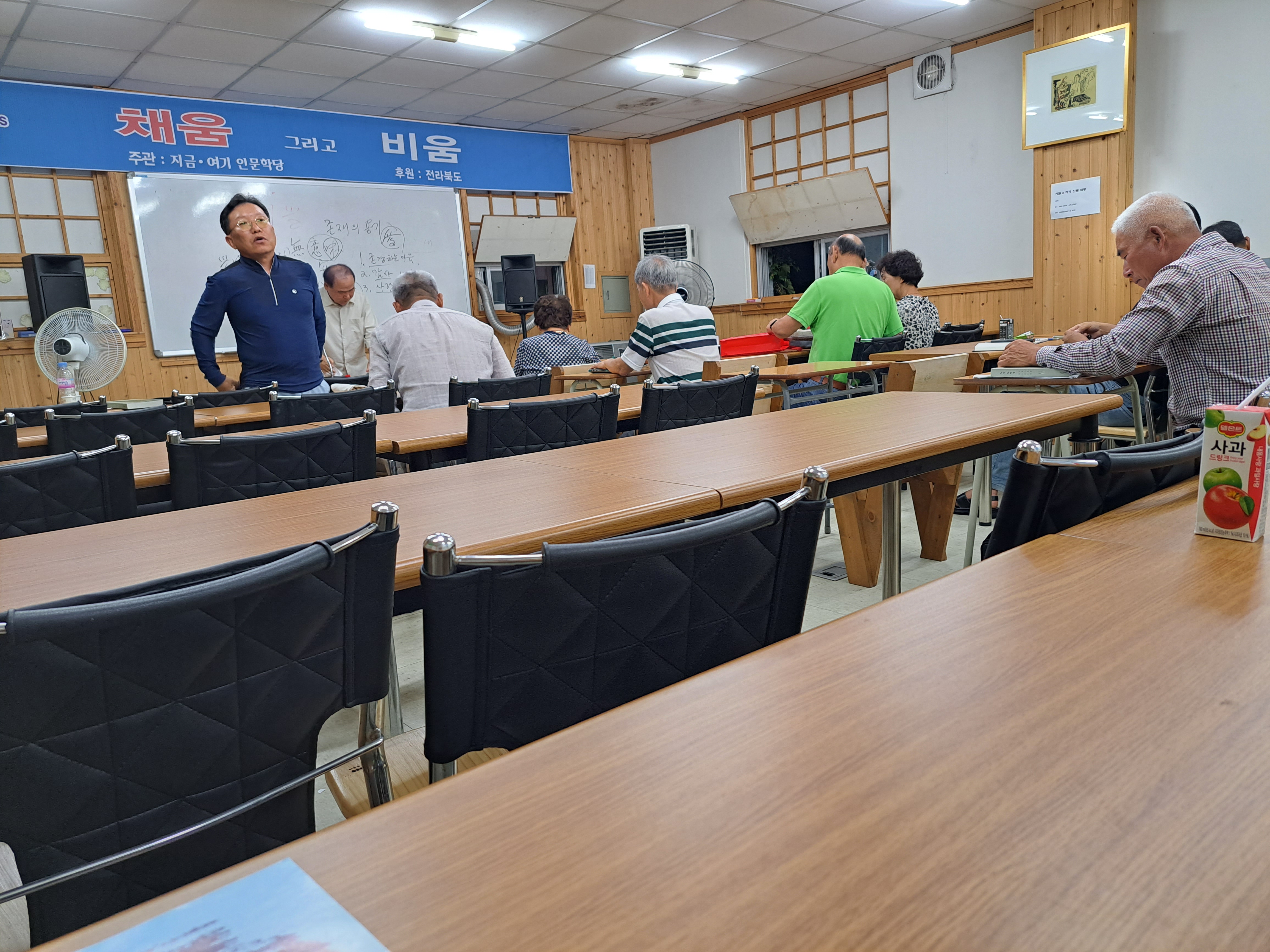 중간에 쉬는 시간 어르신들이 담소를 나누시네요 어르신들이 와서 수업도 듣고 얘기도 하고 좋아보이네요