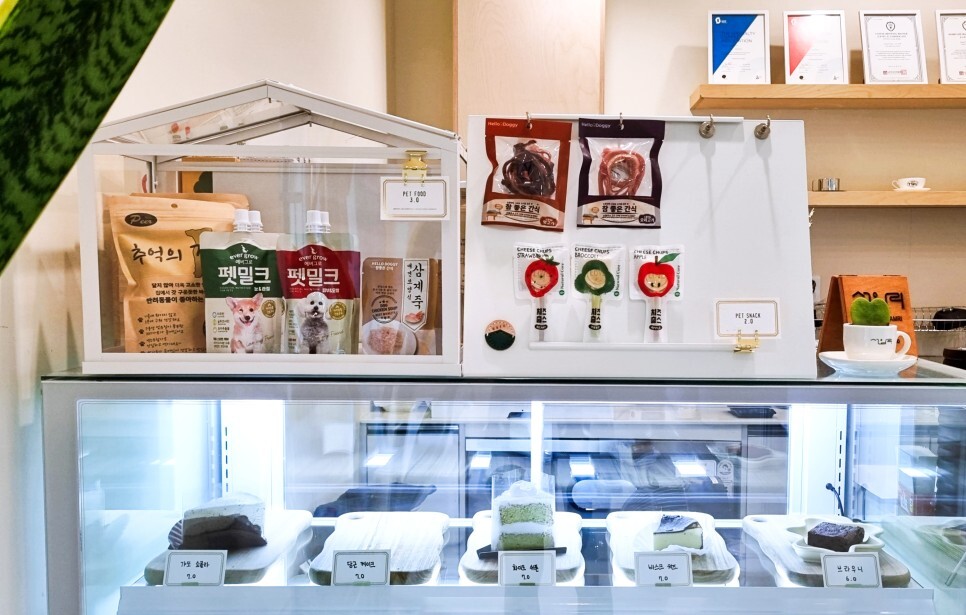 애견 동반 카페라면 보통 일반적으로 동반만 가능한 경우가 많은데, 이곳에서는 함께하는 공간 뿐만이 아닌 강아지가 먹을 간식도 함께 팝니다.