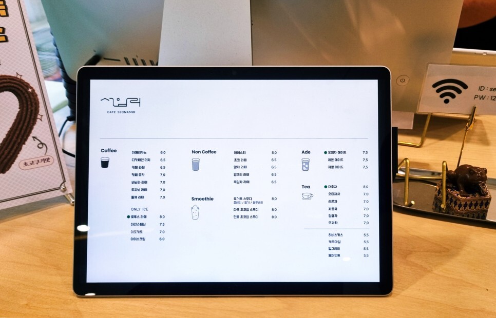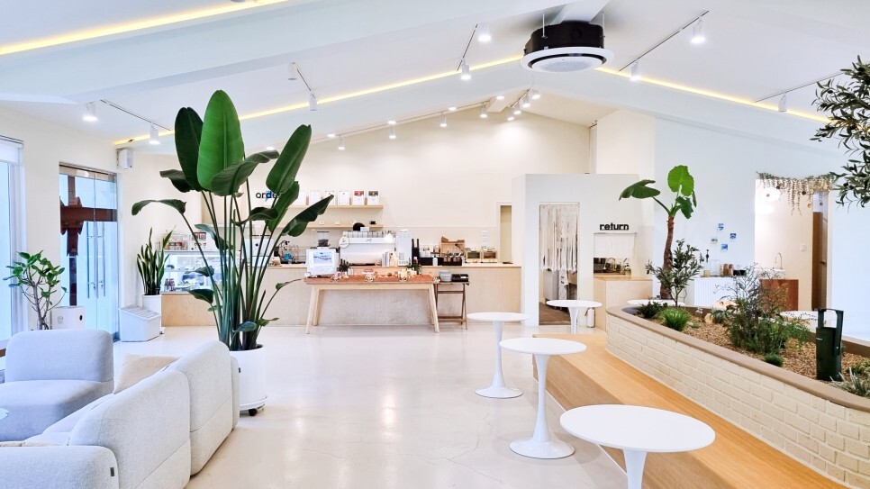 카페의 내부는 깔끔한 전시장 느낌의 화이트와 우드톤의 깔끔한 인테리어로 채워져 눈길을 끕니다.