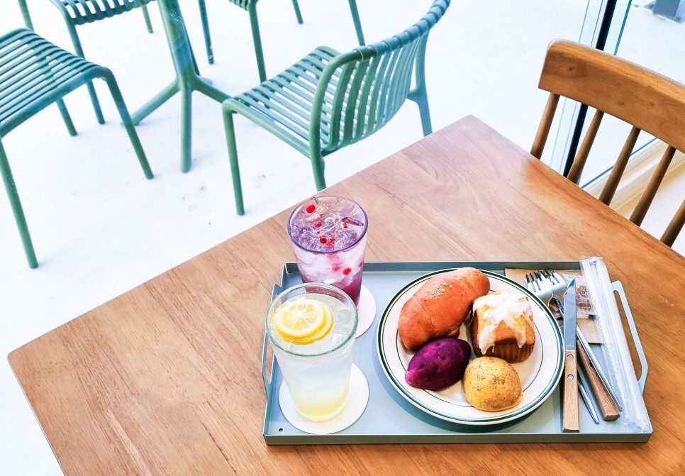 카페의 주위를 구경하다보니, 어느새 주문한 빵과 음료가 나왔는데요.