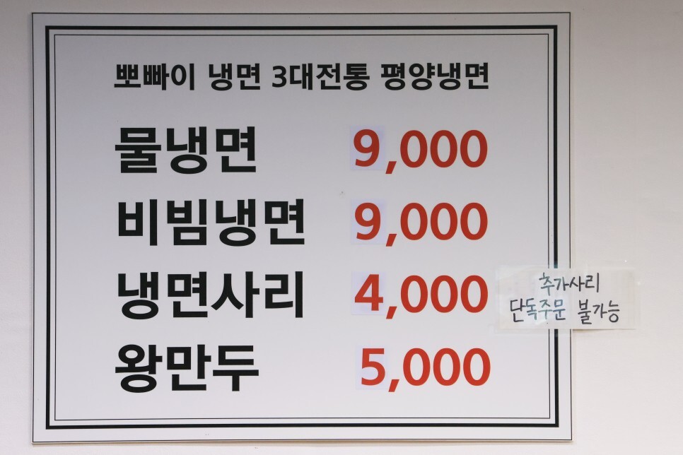 냉면으로 승부하는 것처럼 메뉴는 이게 전부입니다.