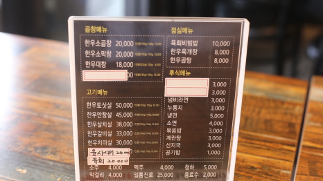 메뉴판입니다. 뒤에는 세트메뉴도 있습니다.