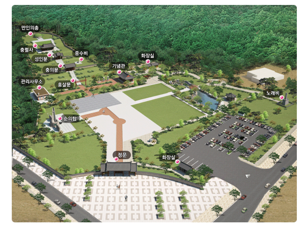 만인의 총의 개략적인 스카이뷰 옛날에 이런 모습이었는데 현재는 기념관도 새로 짓고 큼지막했던 연못이 작게 되어버려서 아쉽다.