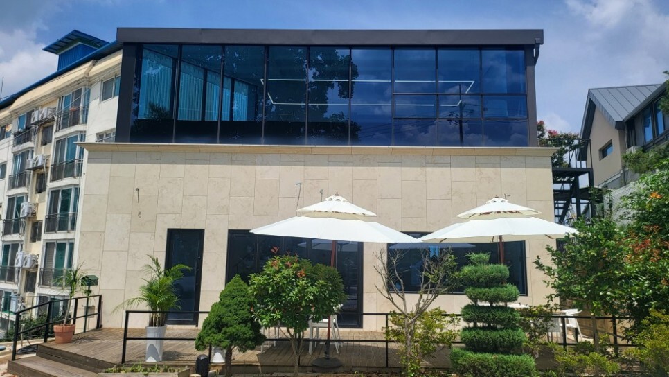 통유리창이 시원합니다. 간판이 안보여서 여기가 카페가 맞나 싶기도 합니다.