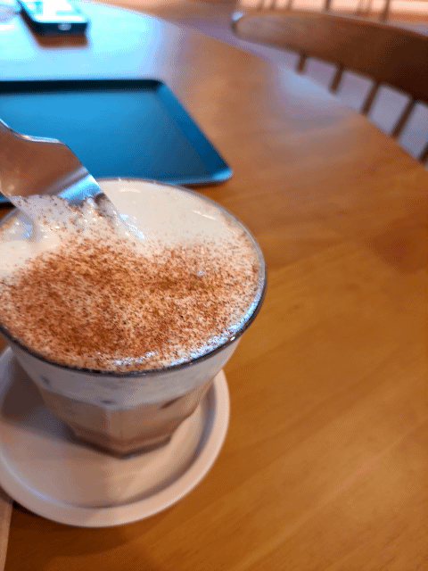 시그니처 커피인 시나몬라떼를 먹어봅니다.