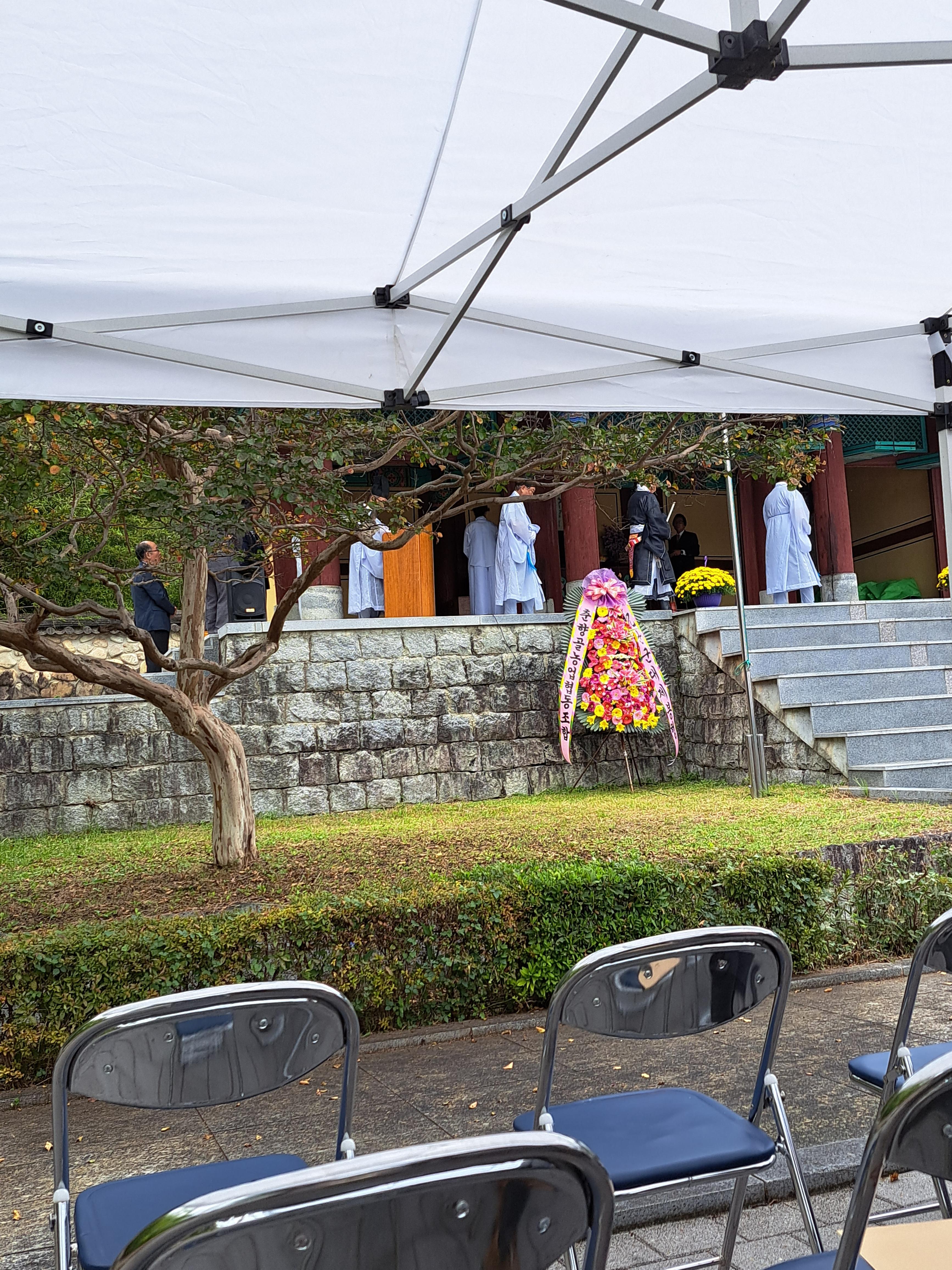 단군 행사를 맞아 이렇게 의자와 그늘막이 있다.