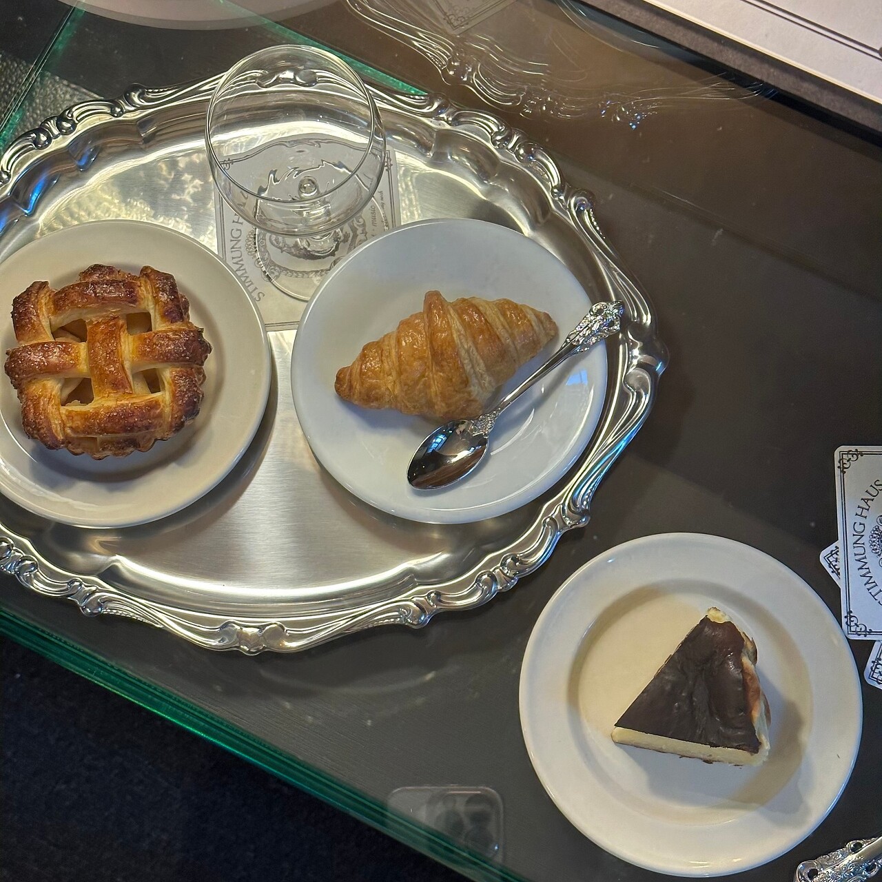 바스크 치크케이크와 크루아상 등 은쟁반에 담겨와서 더 왠지 고급스러워 보이고 맛은 안먹어봐도 맛있겠죠