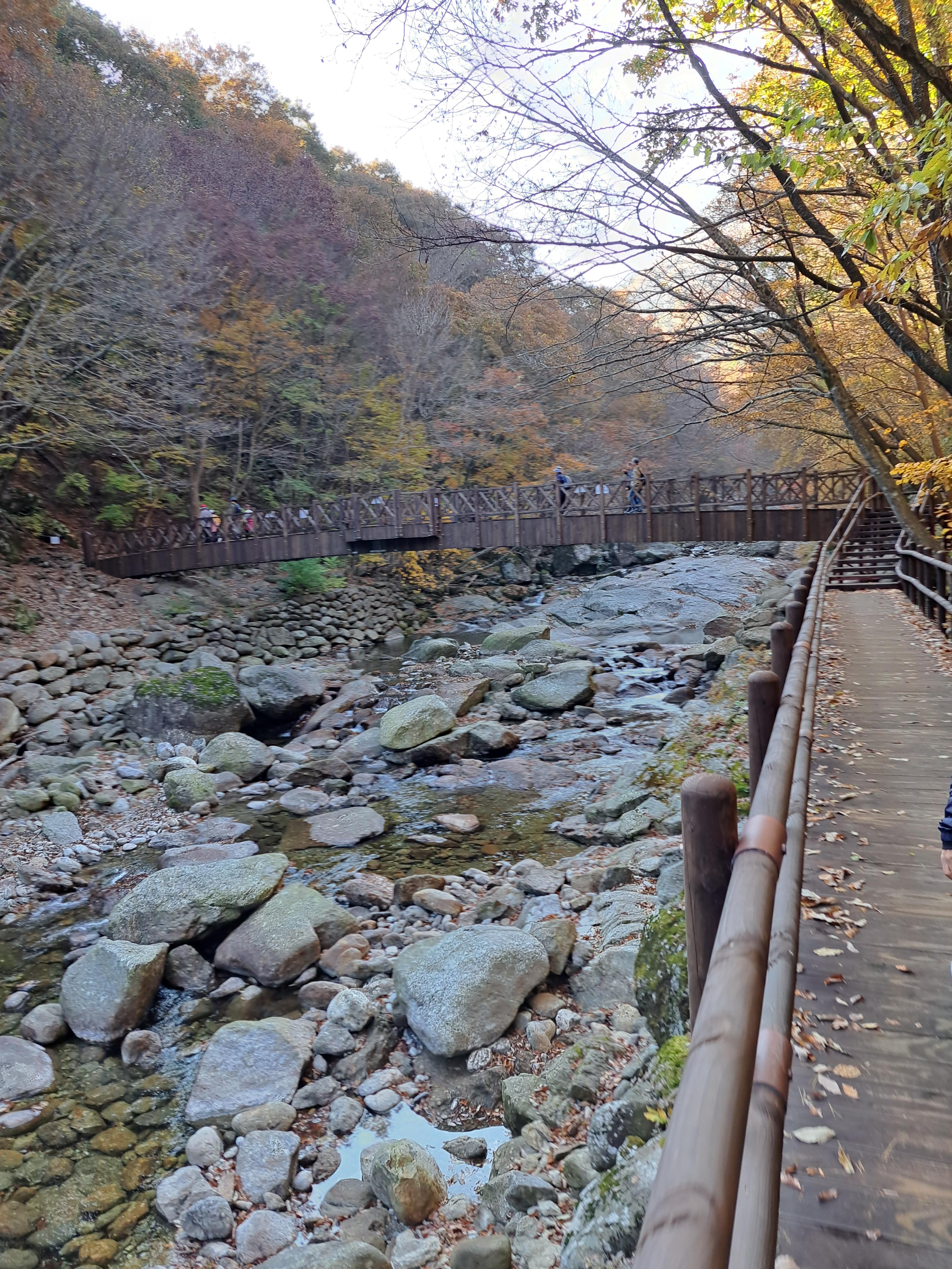 나무데크길을 따라 계곡 옆을 따라 걷는 길이라서 눈이 즐겁고 산책코스로도 좋은 구간입니다. 실제로 여기까지는 제법 사람이 있습니다.