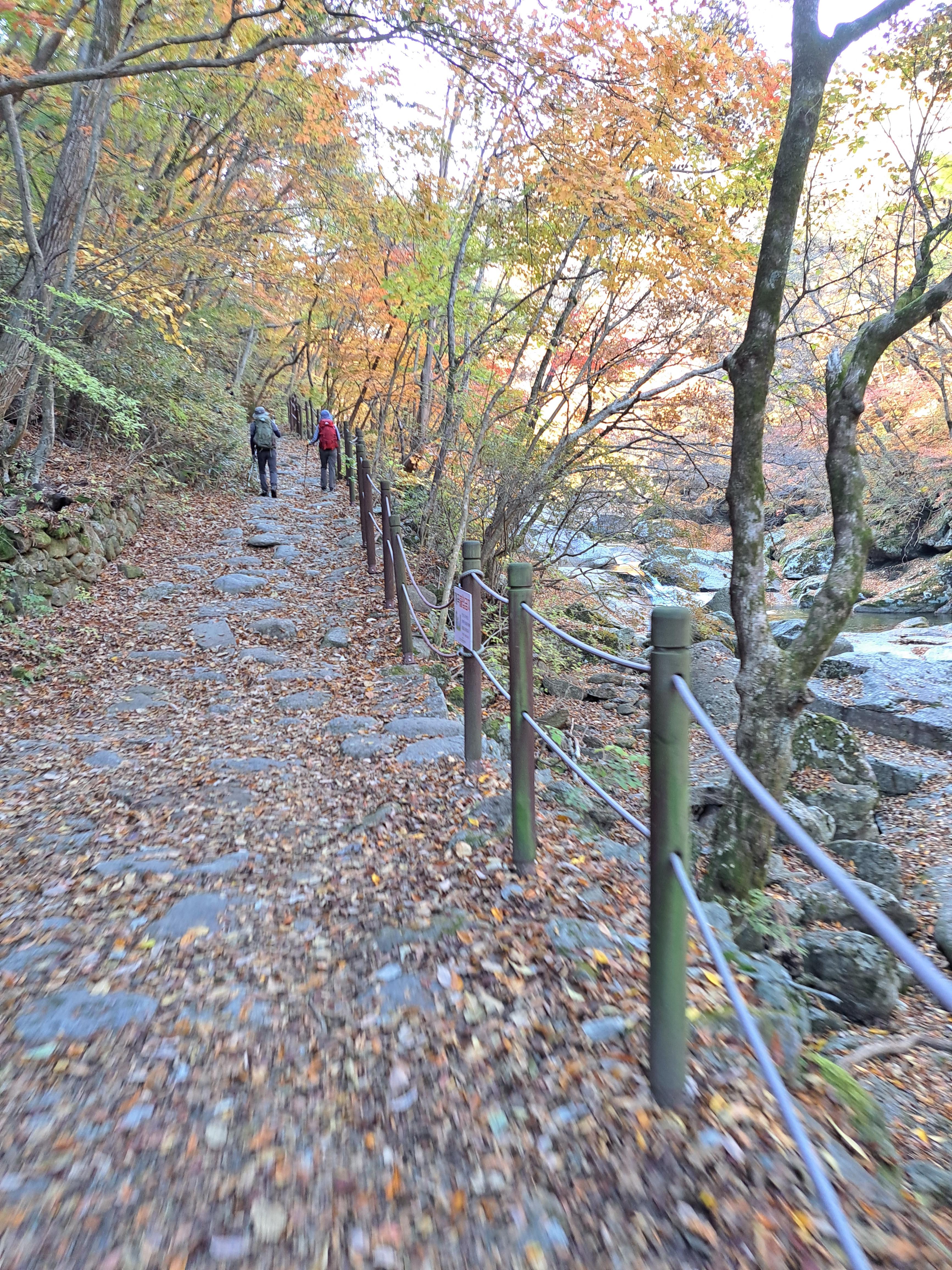 바닥에 돌길이 고르지 않아 발목이 시큰하네요 발목 접질리기 좋은 구간입니다.