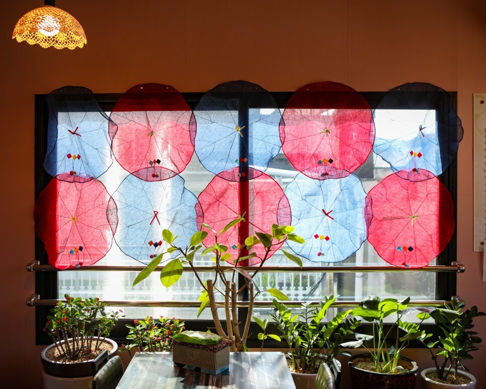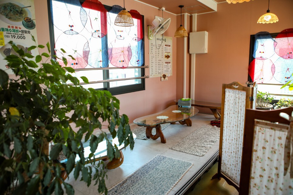 창문에 한지같은것 붙여놓은것도 나름 인상적이네요 화분들도 아기자기 예쁩니다.