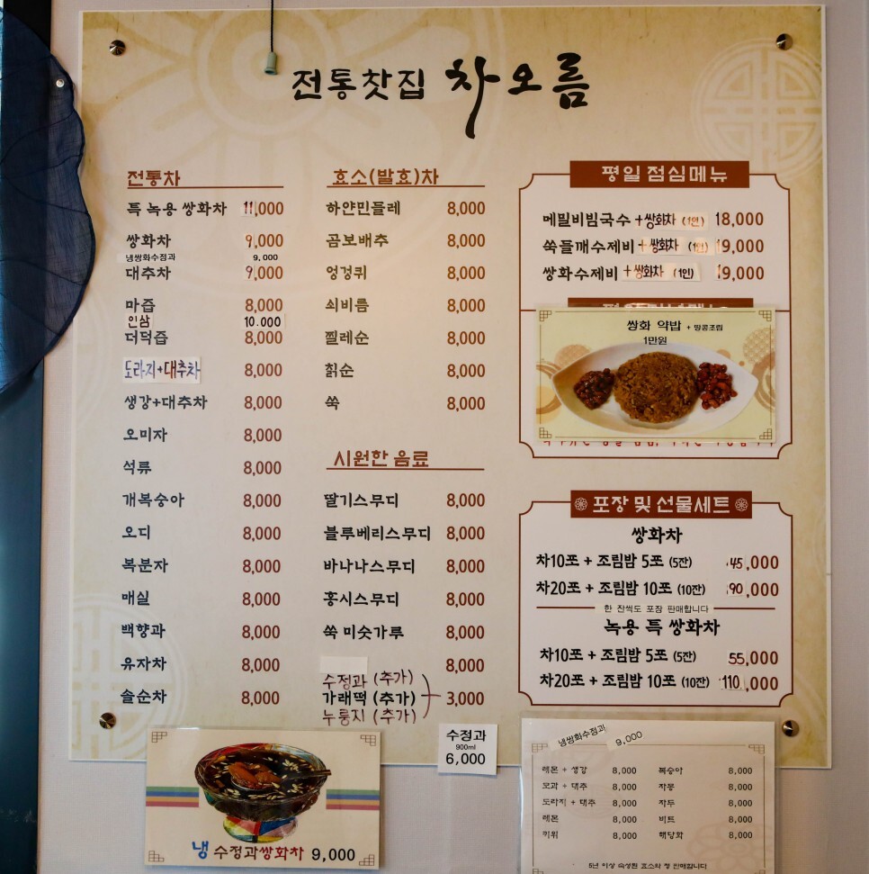 차 종류 말고도 여러가지 한식 이라던지 차 종류부터 미숫가루까지 다양하게 있네요 ㄷㄷ