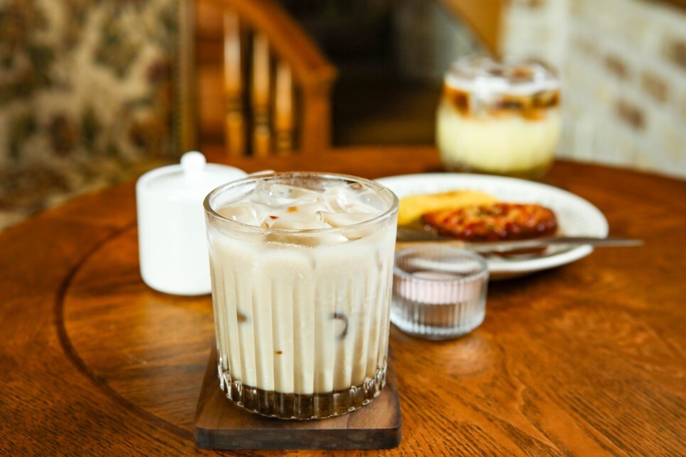 음료입니다. 잔은 작은 편이지만 컵도 예쁘네요