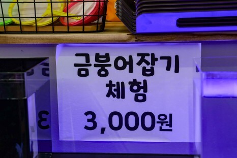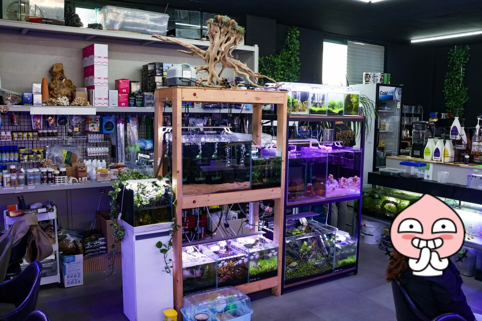 사장님이 물고기를 굉장히 좋아하시는 분인것 같습니다. 물고기 먹이도 팔고 수족관도 같이 겸하는 느낌이네요