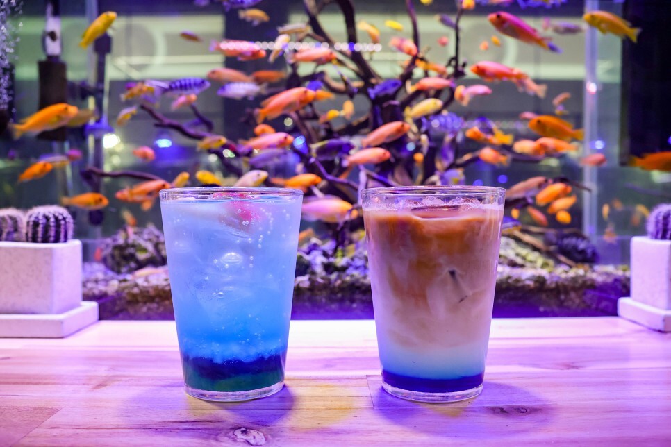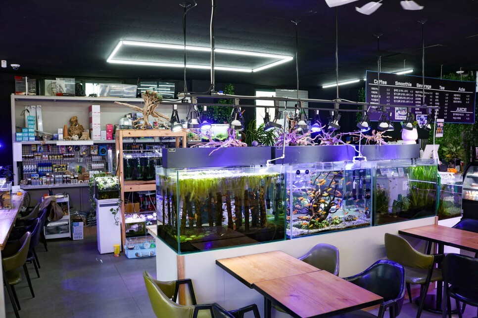 적당한 크기의 수족관 아니 카페 아니 커피네요