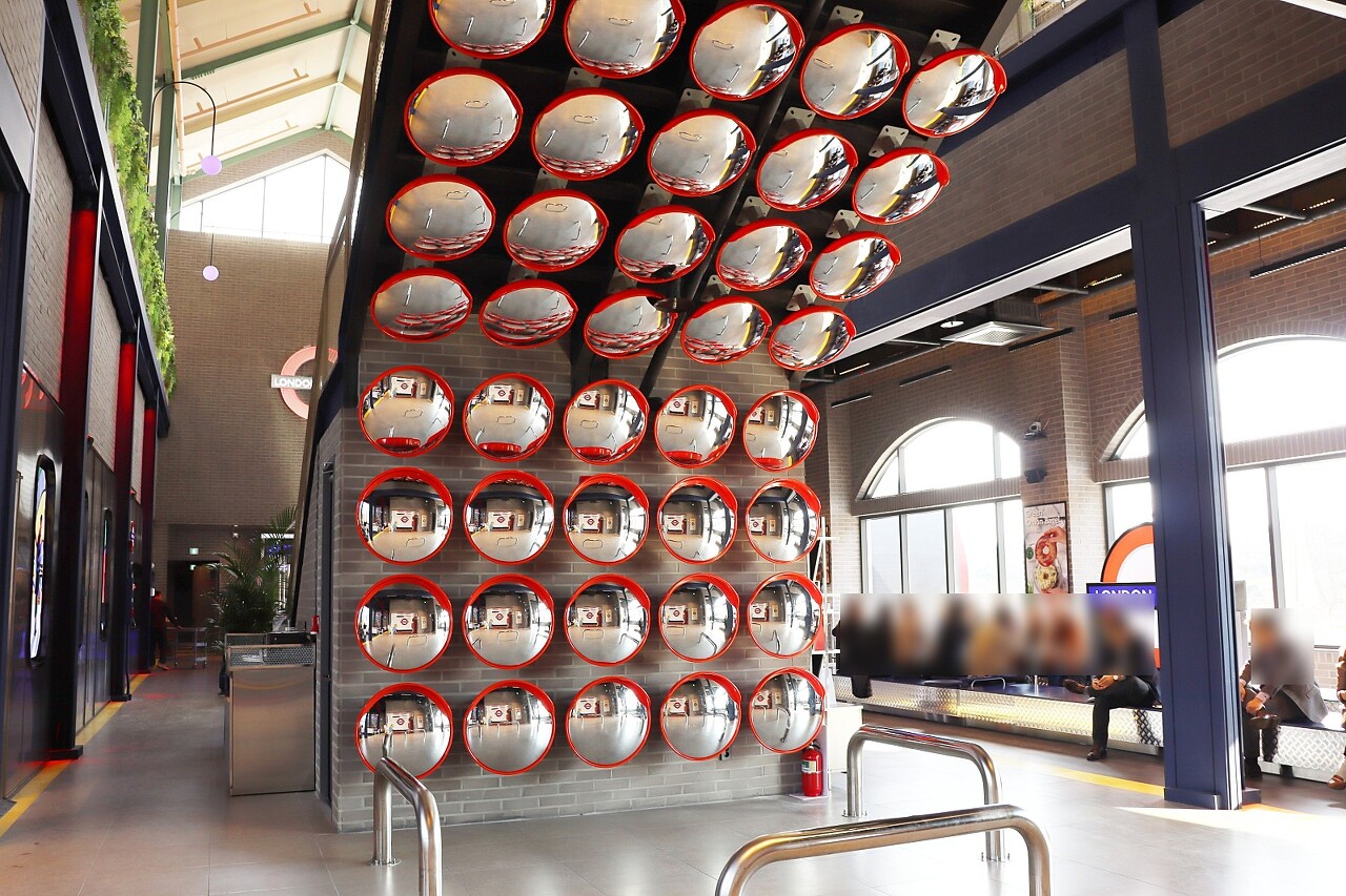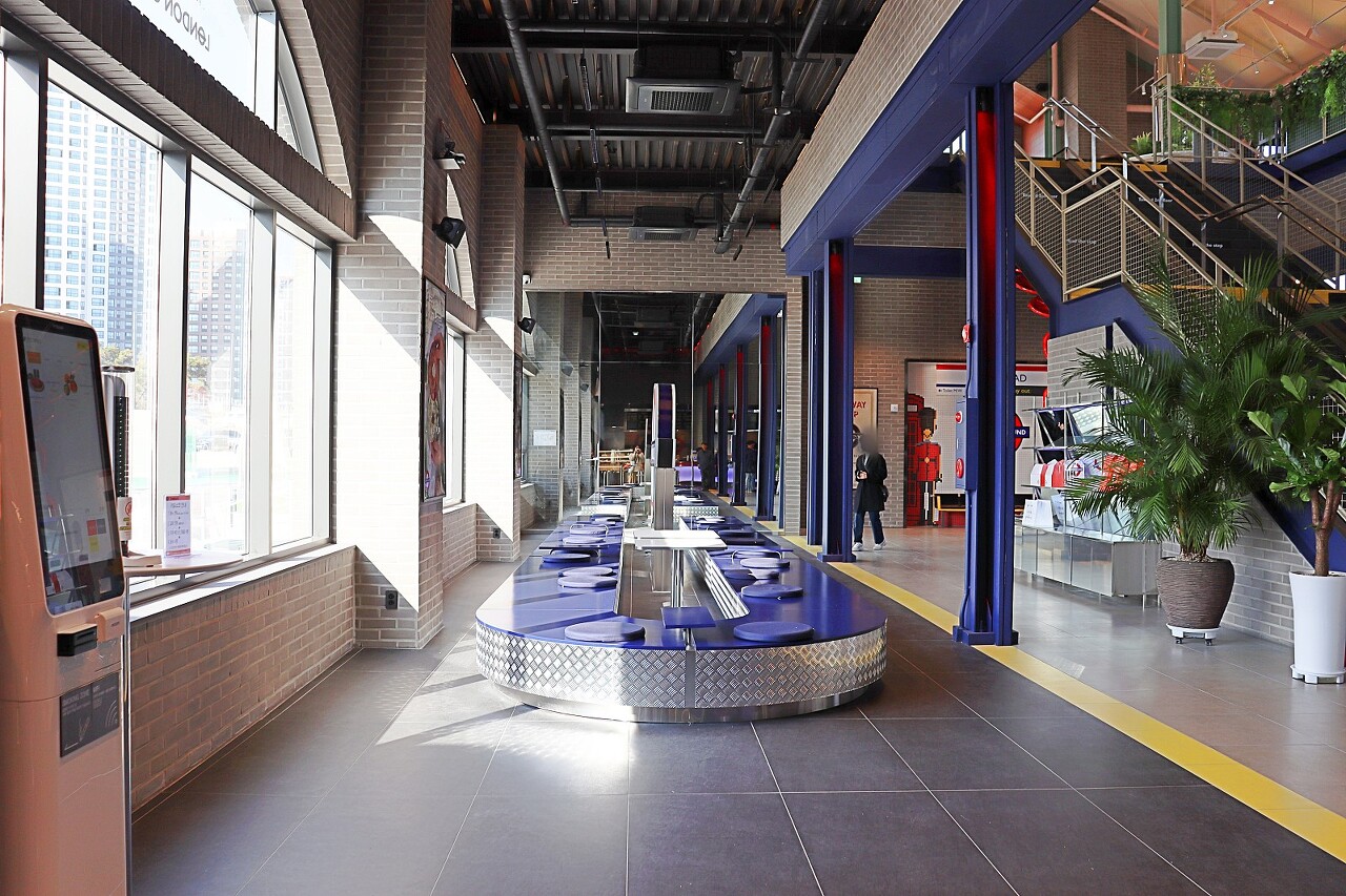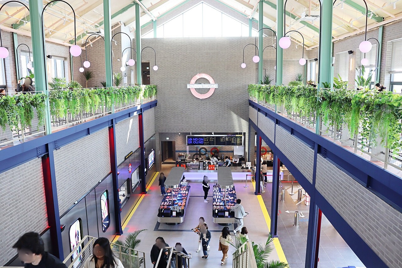 런던의 지하철을 표현한 카페의 한켠이 사진을 부릅니다.