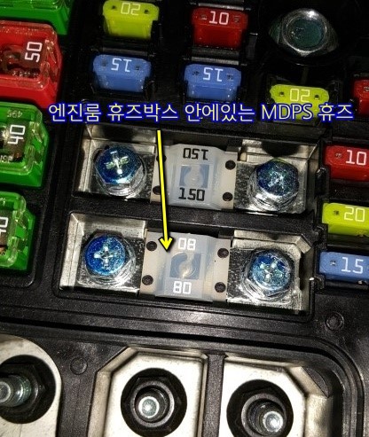 아래사진은 다른승용차의 엔진룸 휴즈박스 안에있는 MDPS 80A 휴즈 사진임니다.