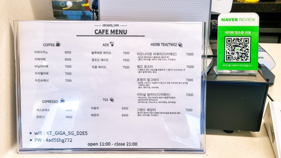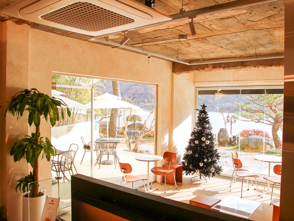 뷰가 아름다워 일까요 가격은 보통 카페보다는 천원정도 더 비싼에요 천원 더 내고 이런 뷰를 감상한다고 생각하면 아깝지 는 않겠쬬