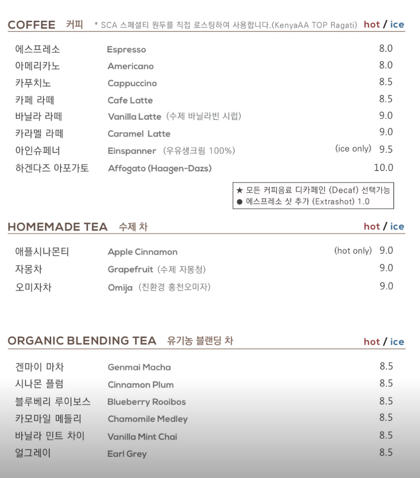메뉴 입니다. 음료를 마시면 입장료가 면제다 보니 그렇게 비싸게는 안느껴지는 느낌이 드네요