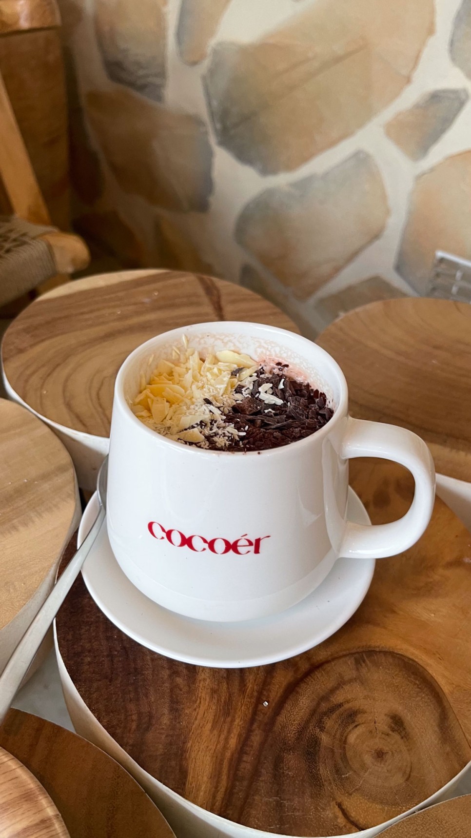 핫초코를 주문하면 갈린 초콜릿을 데코로 올려줍니다.