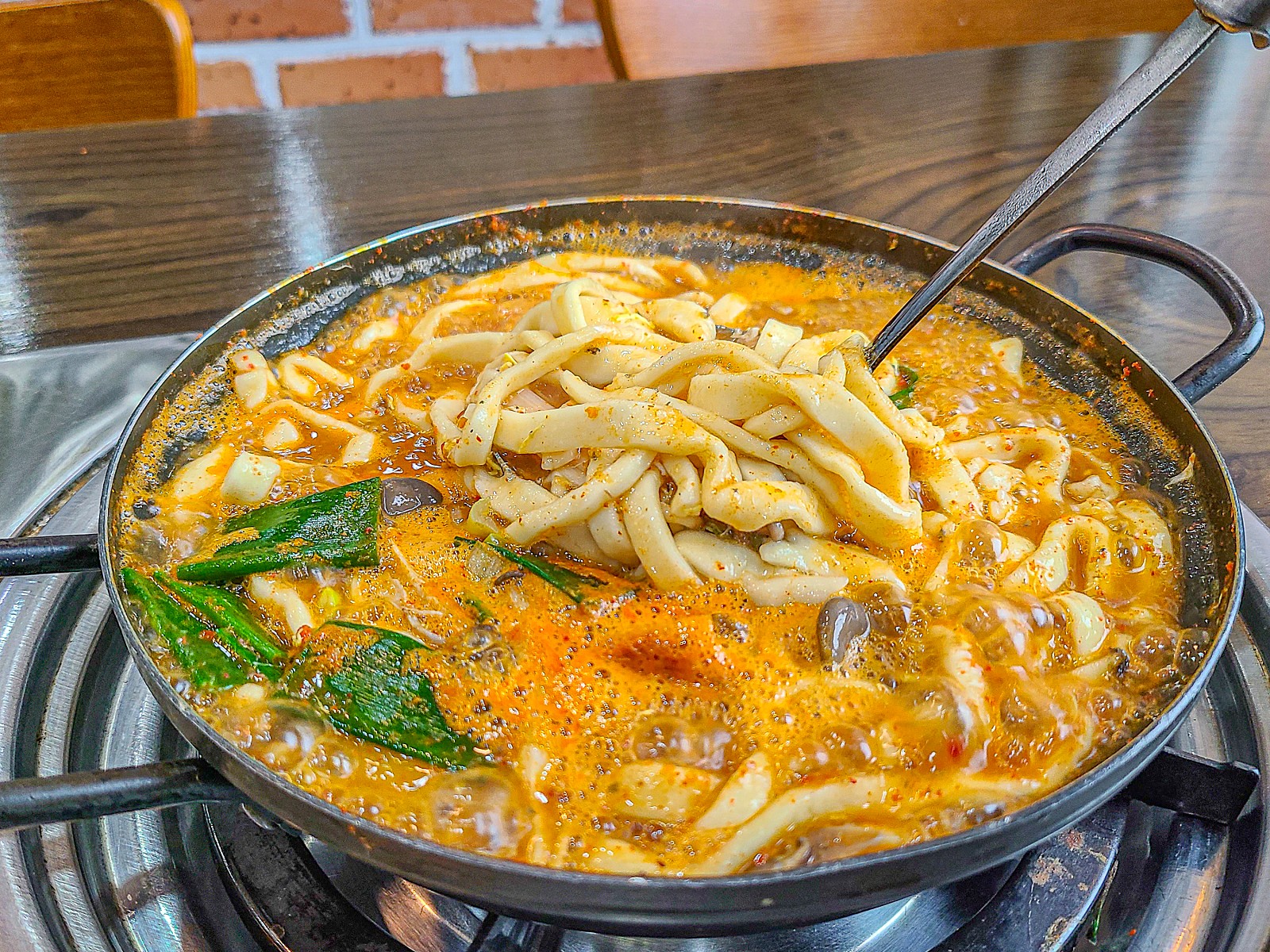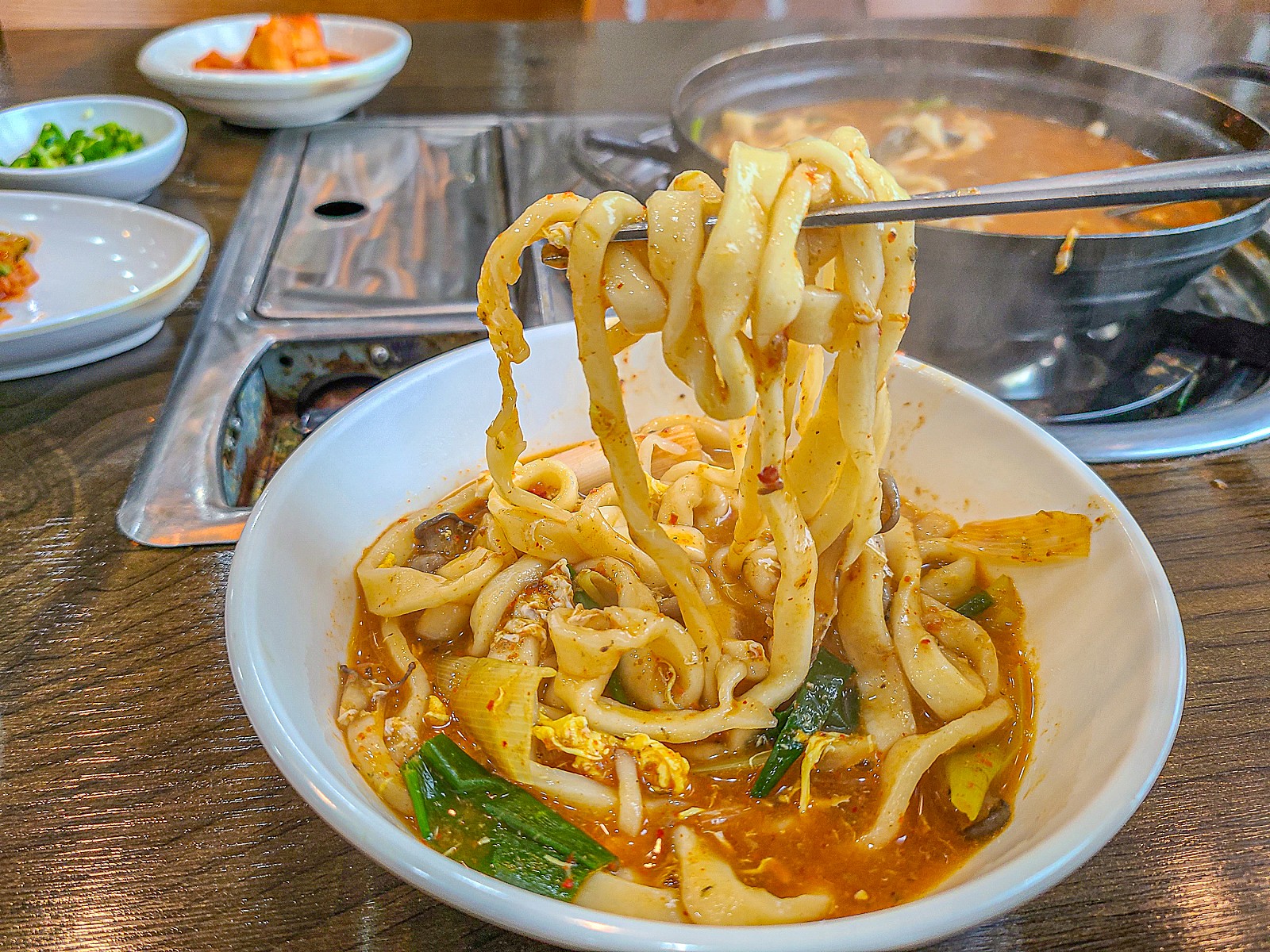 생선칼국수는 이렇게 전골처럼 나옵니다.