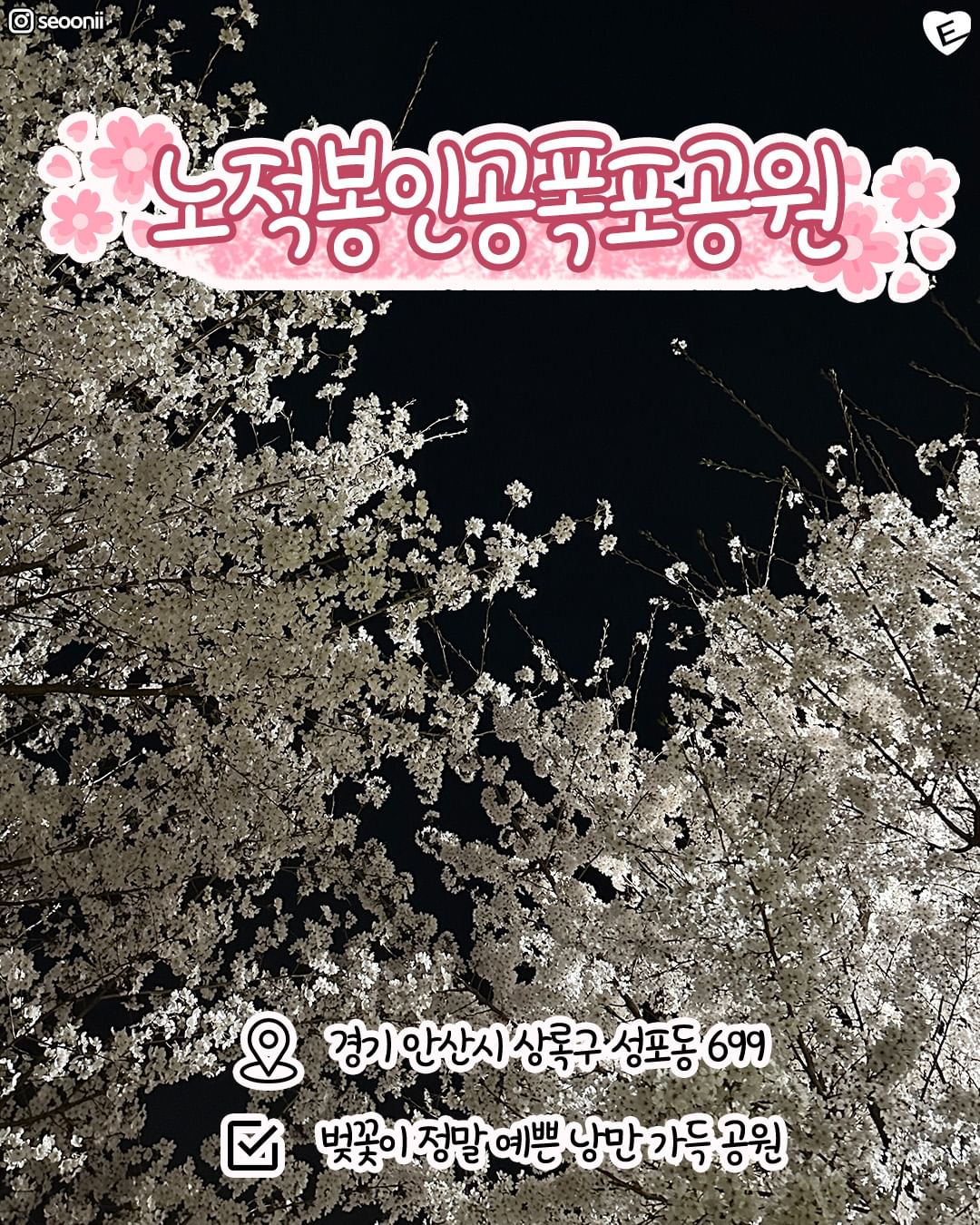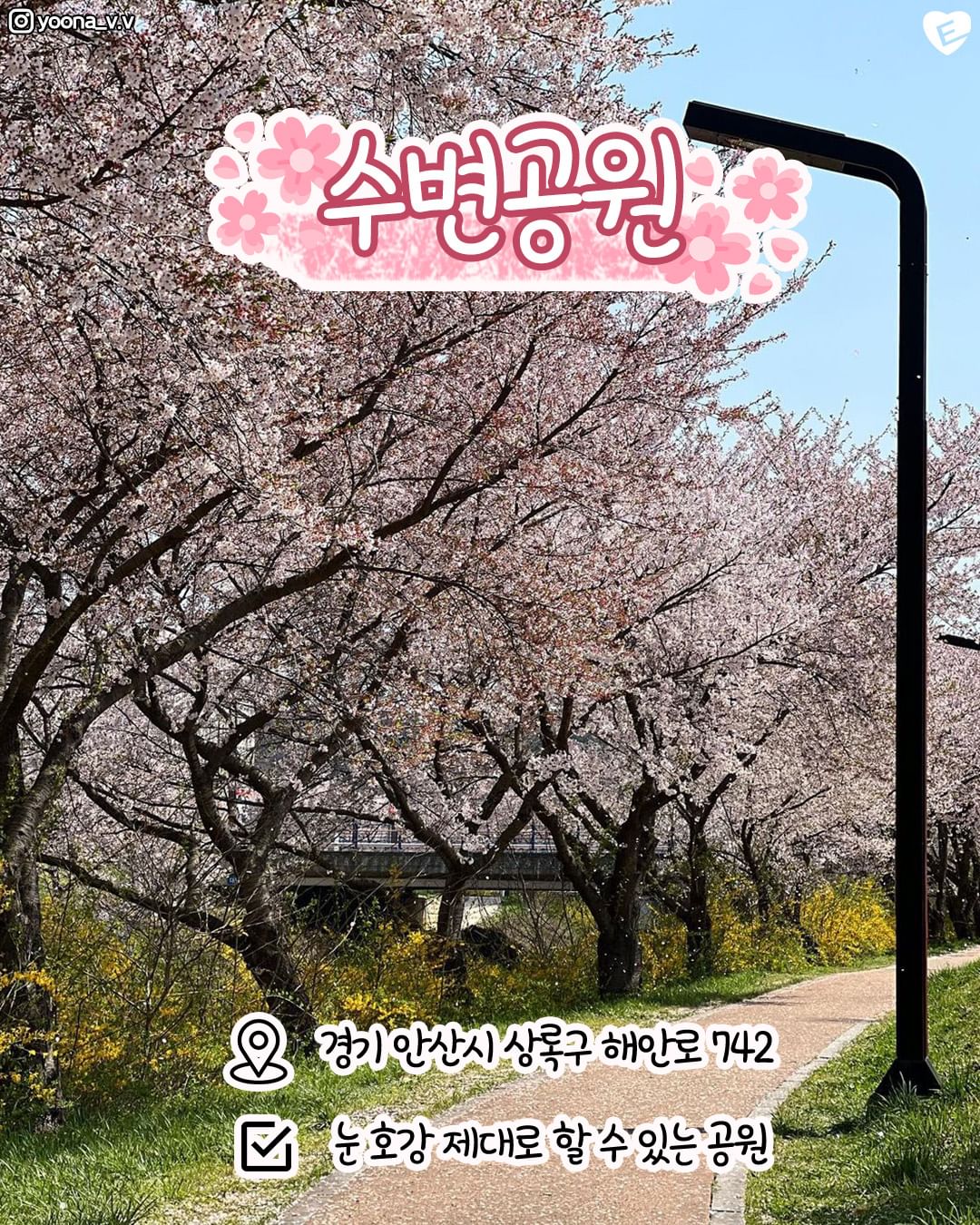 ▷ 안산중앙공원 벚꽃길은 안산시청역에서 도보로 약 10분 거리에 위치하고 있습니다.