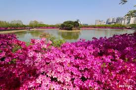 넓은 잔디밭과 호수를 배경으로 붉은, 분홍, 하얀 철쭉꽃이 만발하여 장관을 이루는 곳입니다.