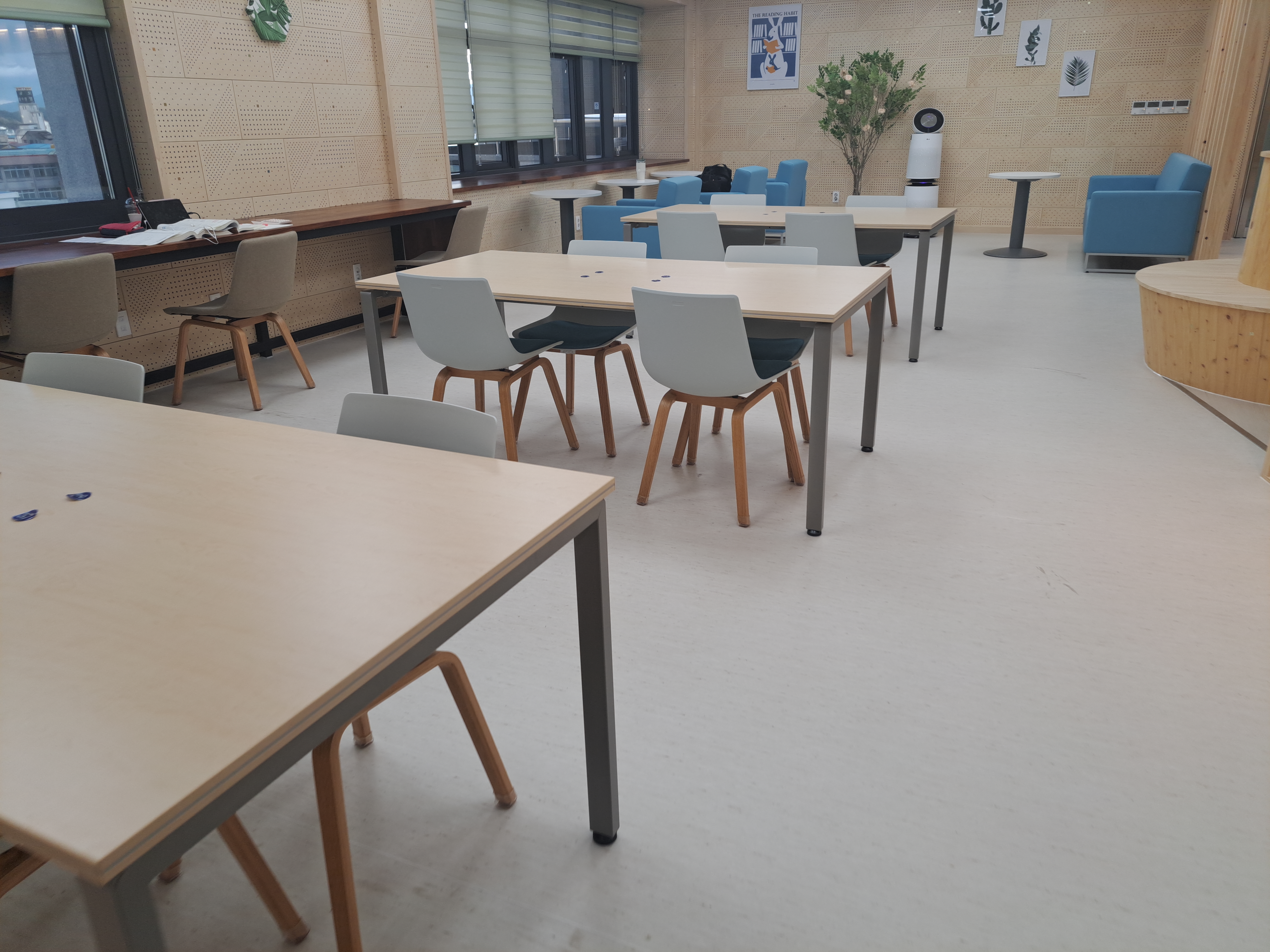 그림도 곳곳에 걸려있고 인조나무도 디자인적 요소를 더하면서 훌륭한 열람실이 된것 같았습니다.