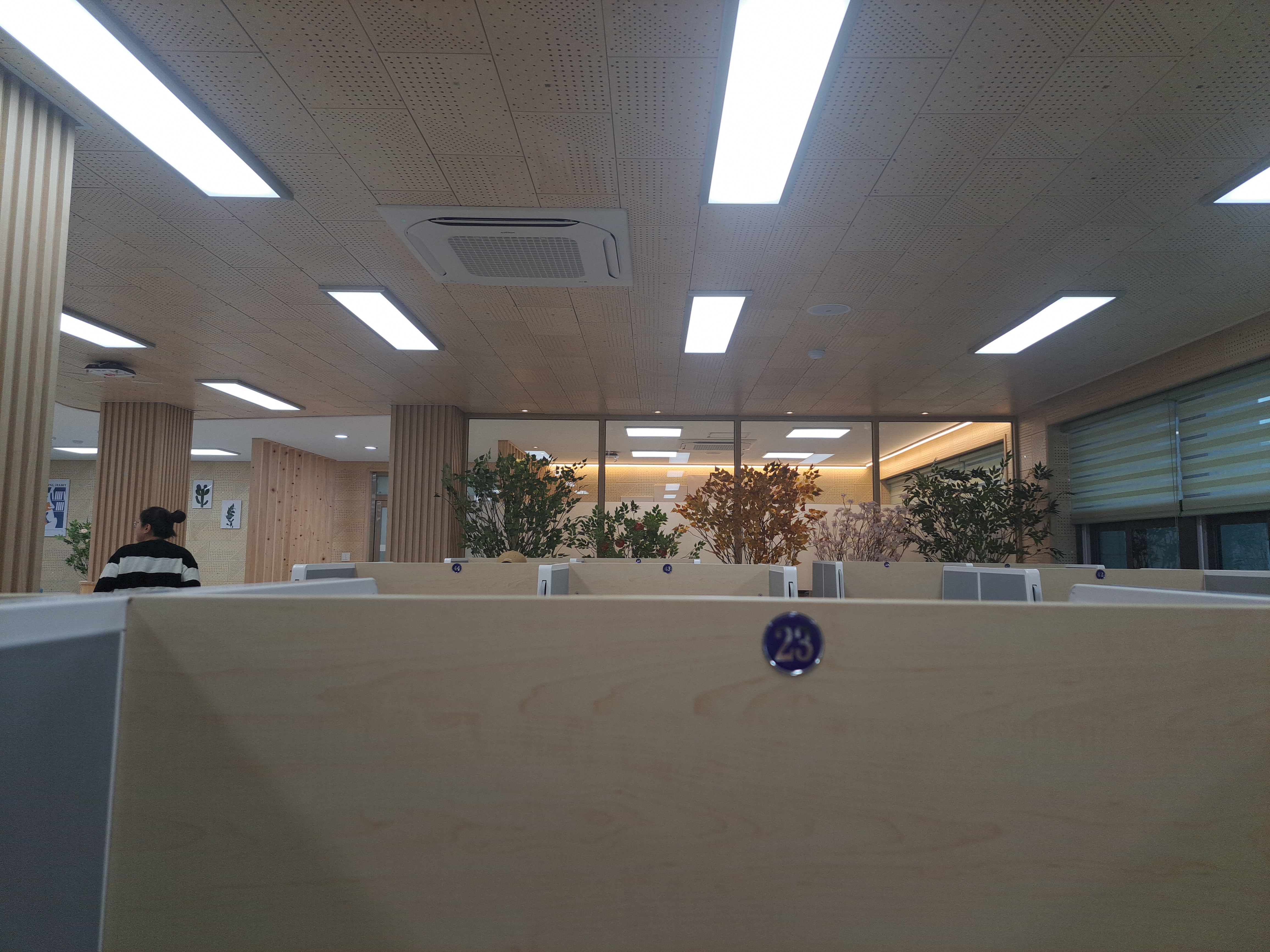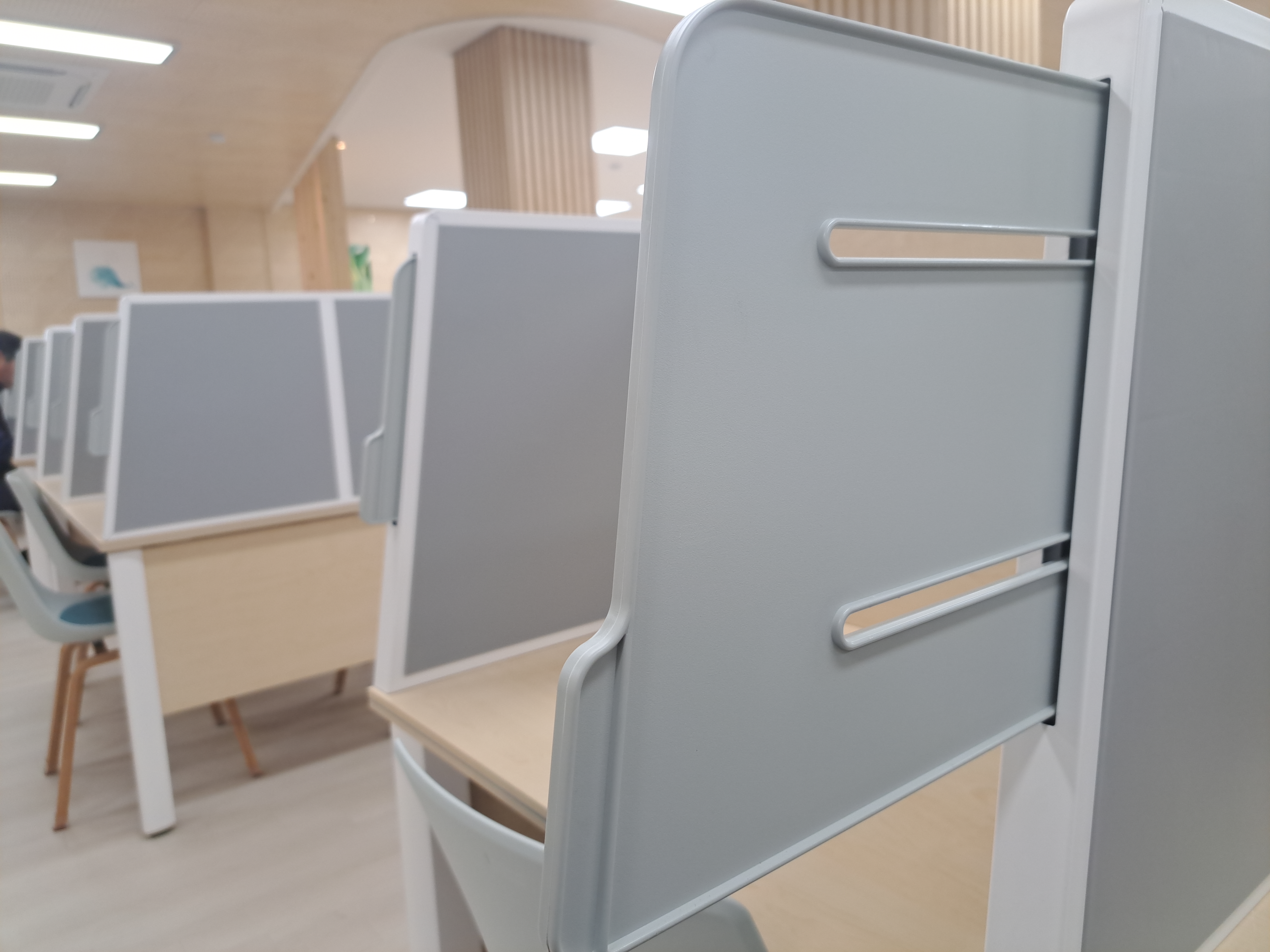 민간 독서실을 능가하는것 같은 높은 칸막이와 심지어 옆 가림막도 있어서 좋았습니다. 예전 열람실은 옆에 시야때문에 공부에 집중이 방해되기도 했고 칸막이는 너무 낮았는데요 이런점이 개선되서 너무나 좋아졌습니다.