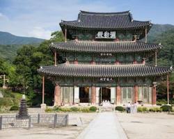 5월에는 사찰 주변의 산들이 진달래꽃으로 물들어 아름다운 풍경을 자랑합니다.