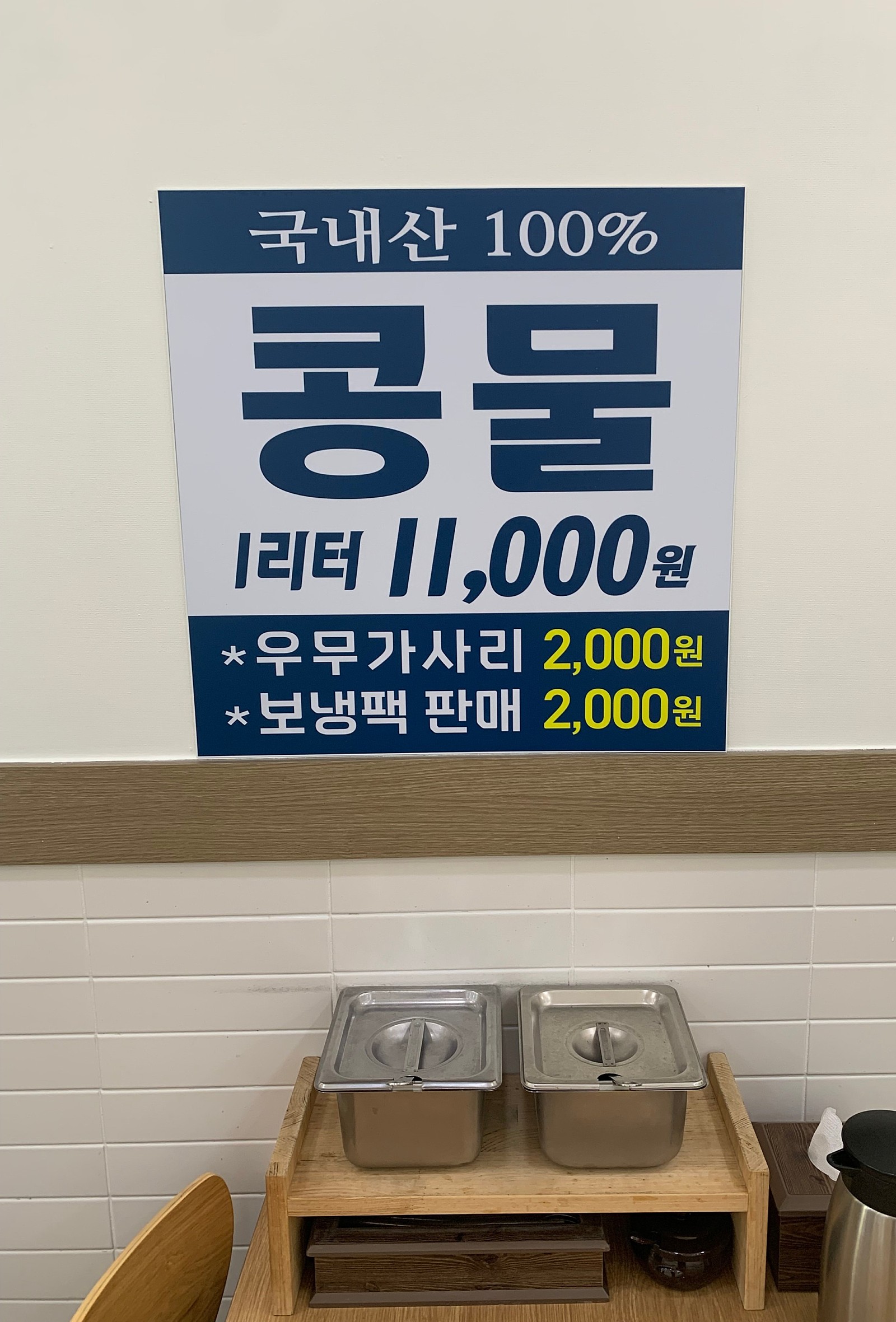 콩물도 1리터에 11,000원으로 따로 팔고 있었습니다.