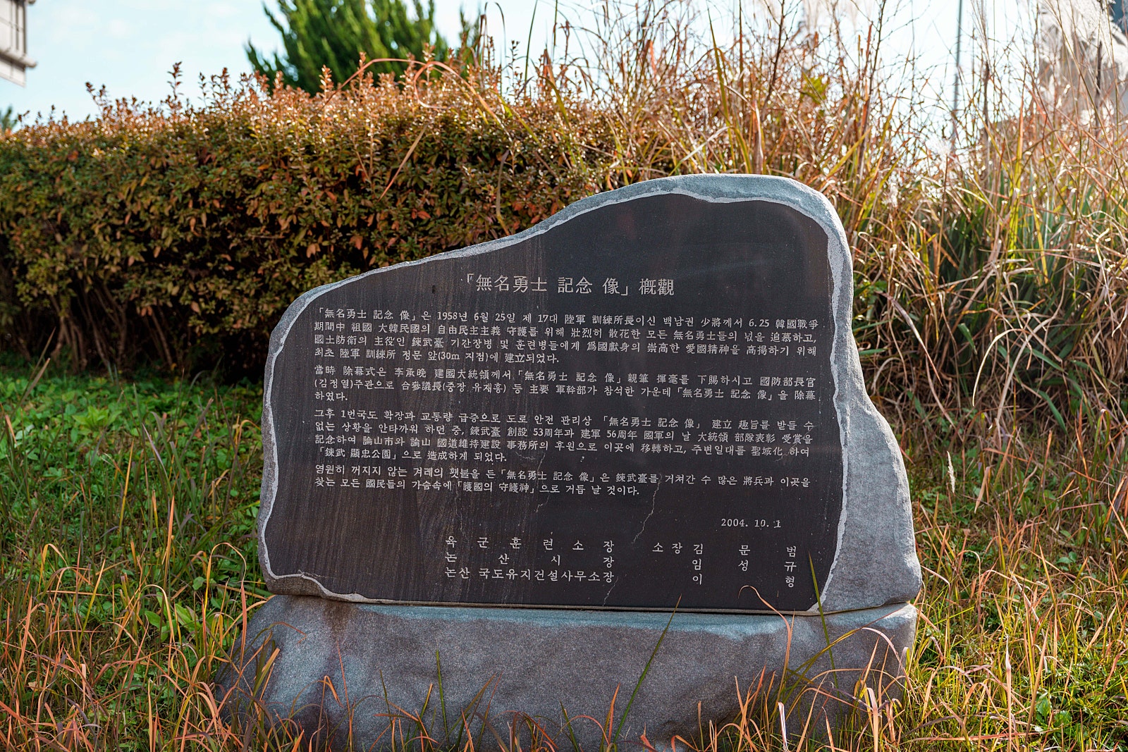 육군훈련소 체험문화공원으로도 알려져 있습니다. 입구에는 무명용사 기념상이 세워져 있으며 국난극복을 위해 소중한 생명을 마쳤음에도 이름조차 알리지 못한 무명용사들의 넋을 추모하고 충혼을 달래고자 세워진 동상입니다.