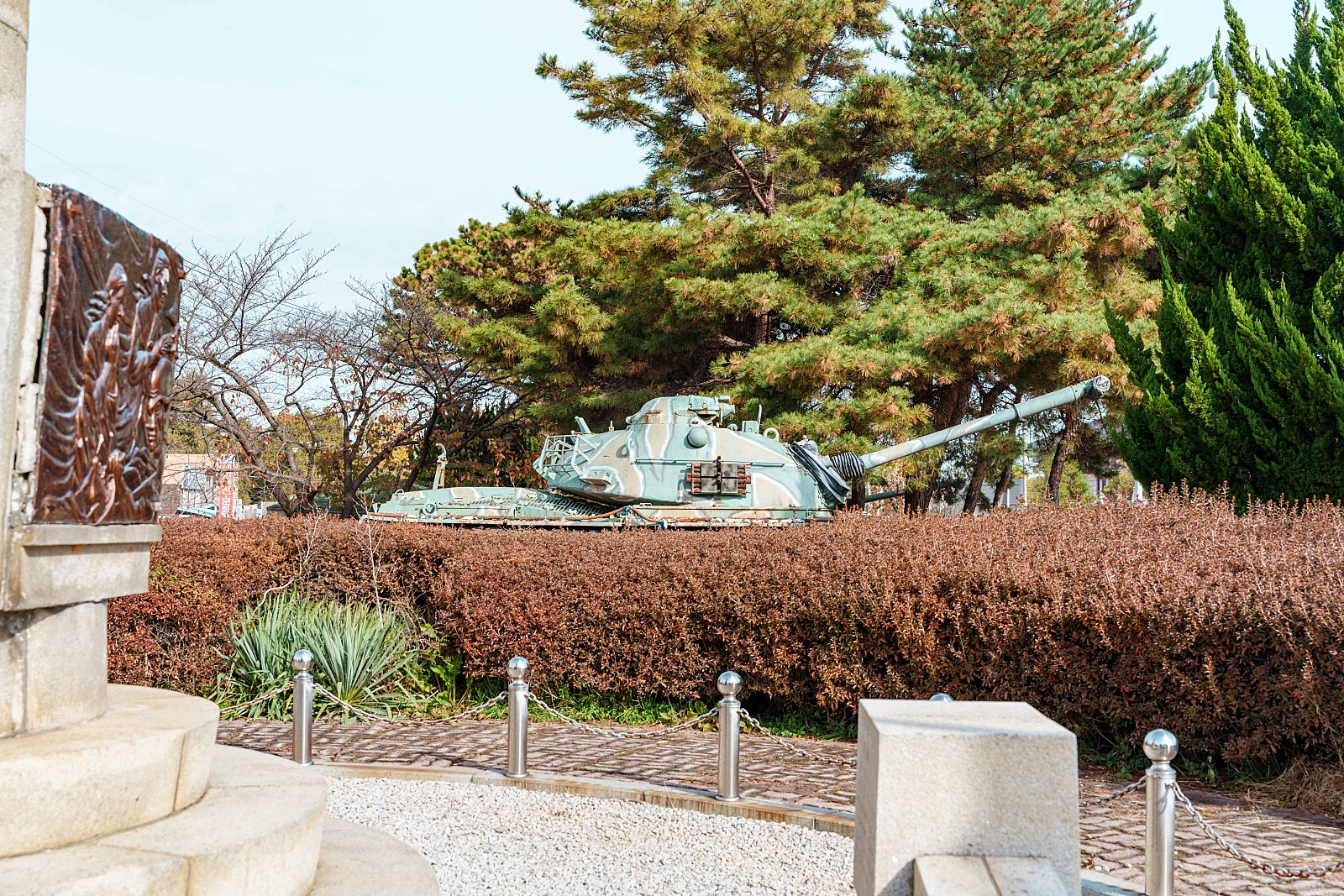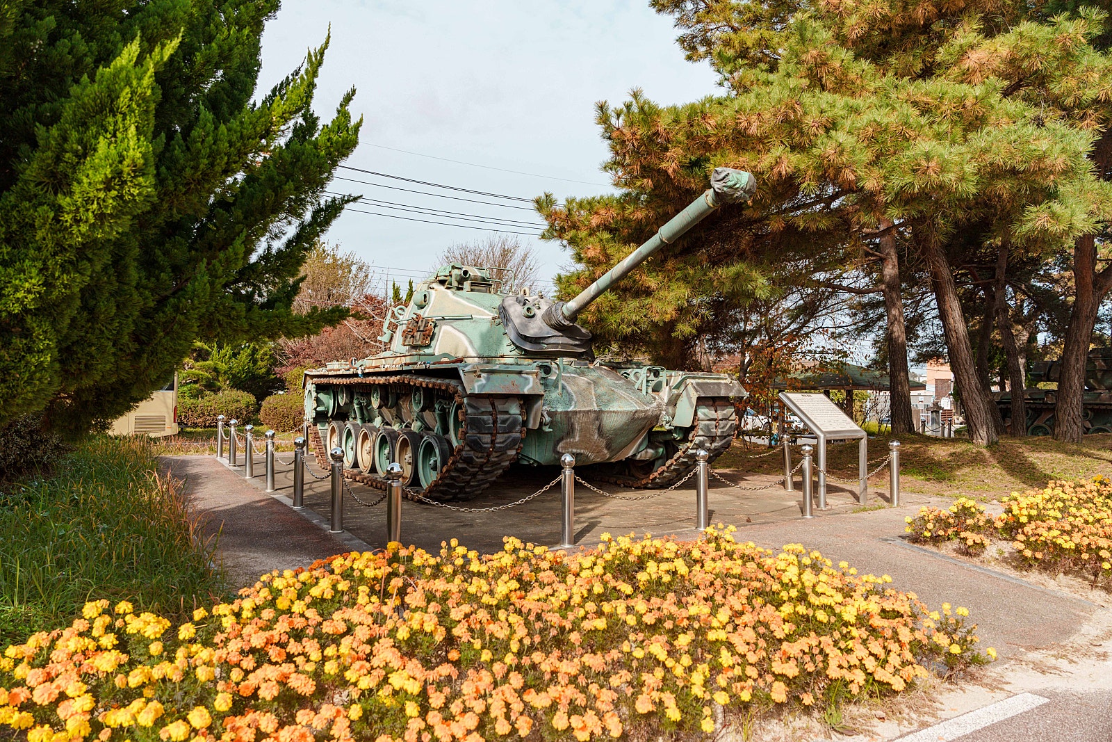 무명용사 기념상 바로 옆에 위치한 M48전차는 멋진 외관을 뽐내며 있으며, 1970년 ~ 1980년까지 우리나라에서 운용되던 전차입니다. M47 전차를 개량한 것으로 아시아 국가를 비롯하여 인도, 중동전까지 참여하며 큰 활약을 펼치던 전차입니다. 승무원은 약 4명이 탑승 가능하며 90에서 105MM 주포를 사용하는 것이 특징입니다. 최고 속도가 48KM/H로써 그 시절 전차치고는 매우 빠른 편이라고 알려져 있습니다.