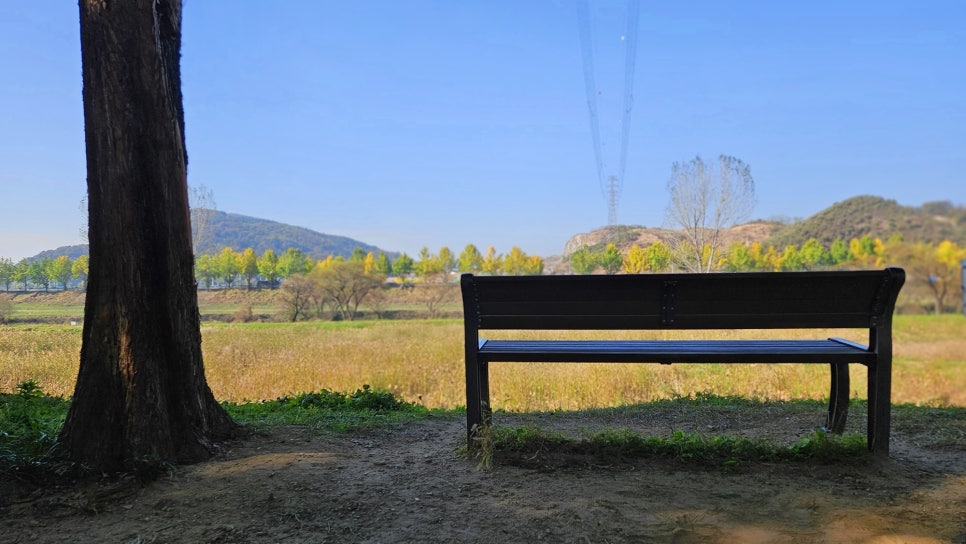 메타세쿼이아 나무는 아직 본격적으로 물들지 않았지만, 건너편에 있는 은행나무는 한창 가을을 보여주고 있었어요. 줄지어 있는 모습이 참 예뻤는데요, 조금 더 노랗게 되면 일렬로 늘어선 모습이 훨씬 더 멋있겠죠? 마찬가지로 저쪽에서 하늘 높게 자란 이 숲을 보는 풍경도 좋을 겁니다.