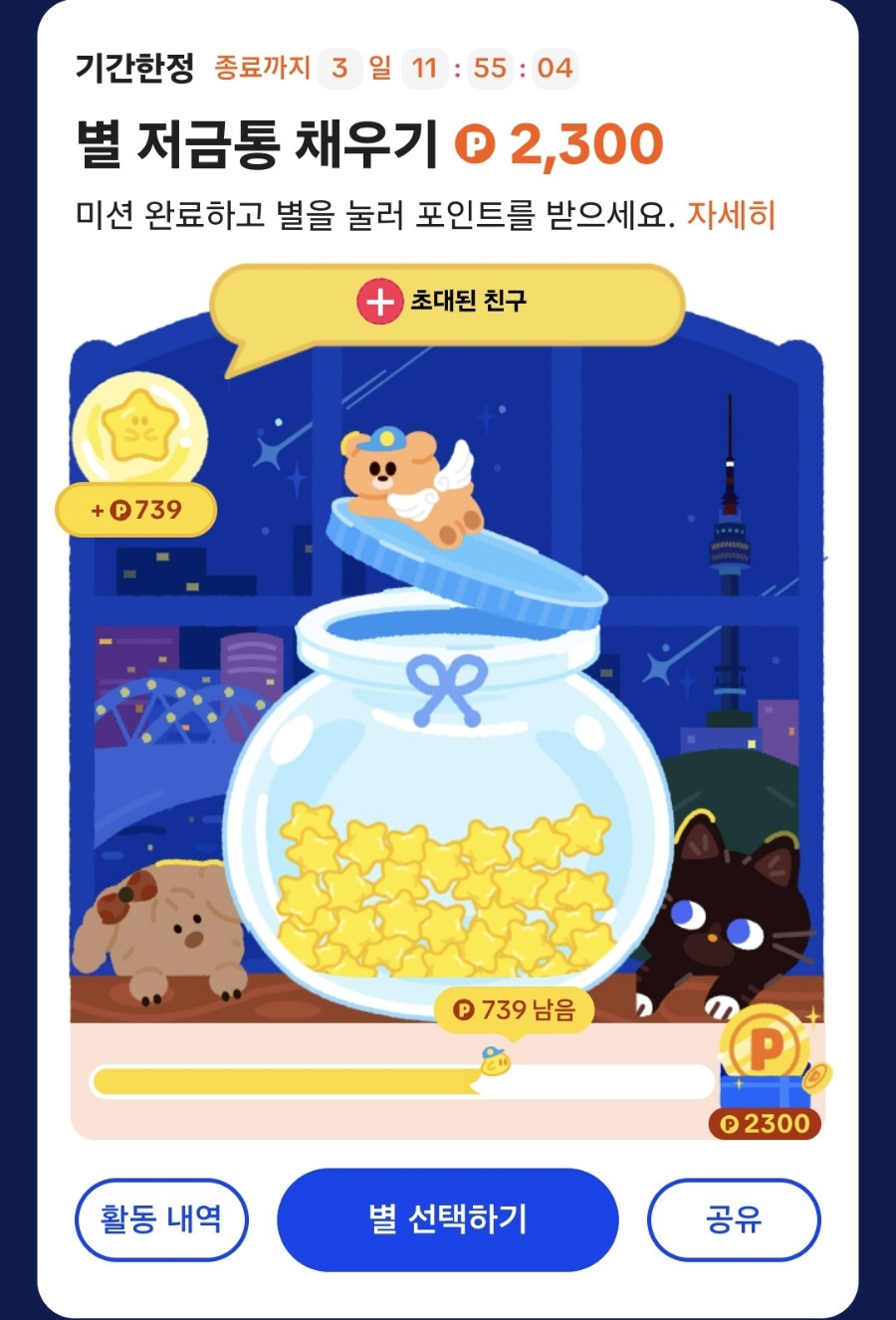 최근에는 일정조건을 충족하면 포인트를 주는별 저금통 이벤트와