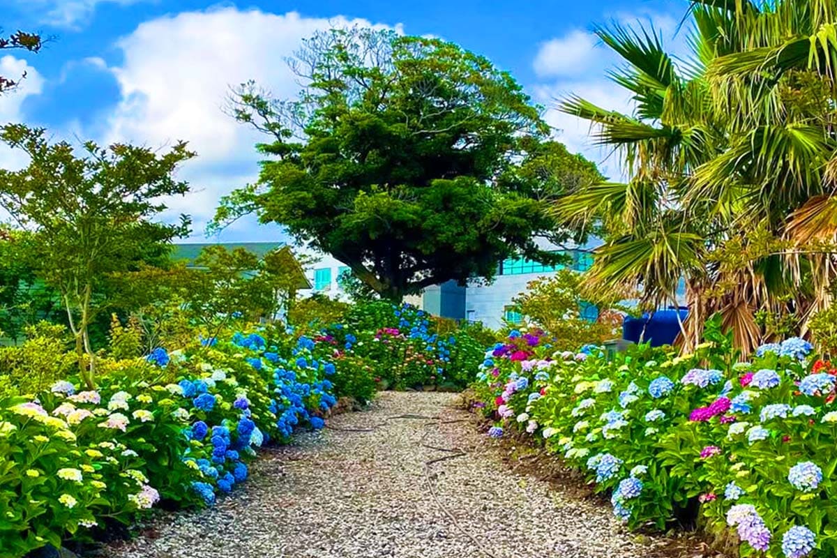 💜 추천이유: 수국이 1km 넘게 길 따라 쭉쭉~ 파란 바다랑 함께 걸을 수 있는 뷰는 진짜 감성 폭발이에요✨