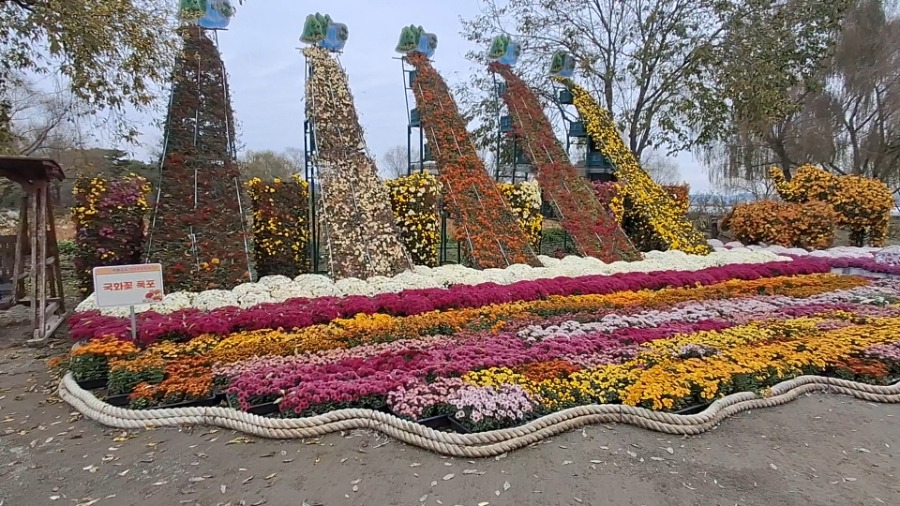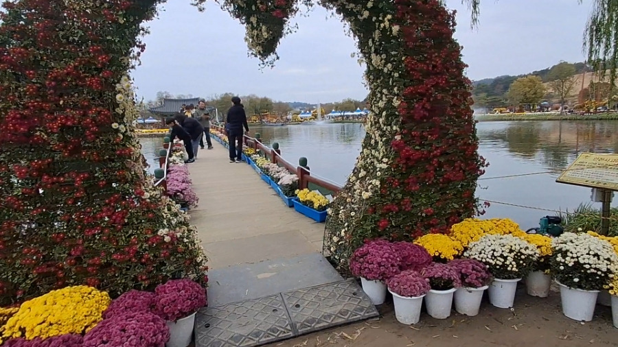 궁남지는 전국적으로 연꽃 명소로 유명하지만, 11월에는 국화의 아름다운 명소로 탈바꿈합니다.